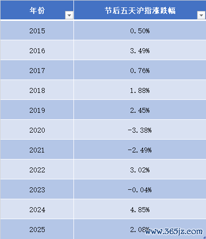 春节后5个交易日,上涨概率高达70%,其中2024年节后涨幅最大,达4.85%。量能层面,呈现“节前缩量、节后放量”的特征。