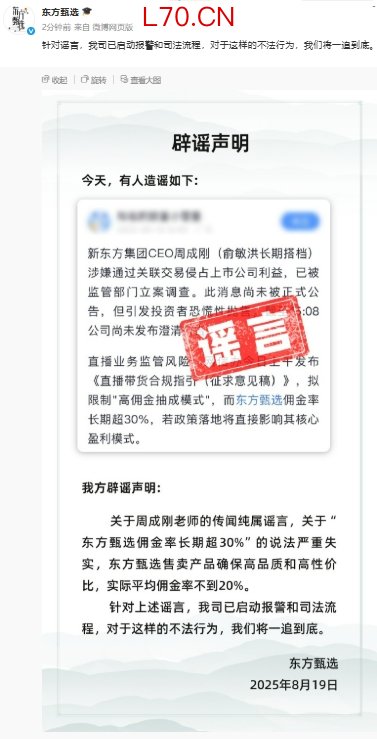 东方甄选:针对谣言已启动报警和司法流程