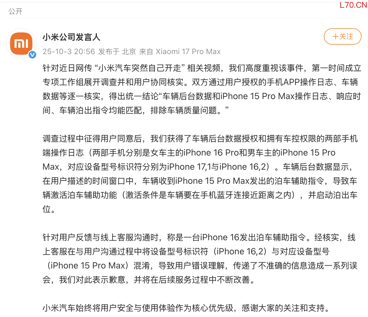 小米回应“小米汽车突然自己开走” 相关视频