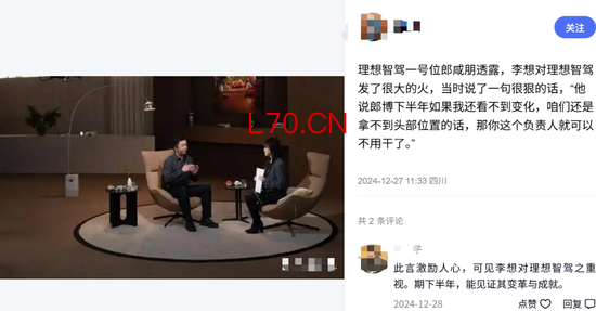郎咸朋的离开也让人们想起一件往事。2024 理想 AI Talk上,他透露李想曾对他说,“下半年如果我还看不到变化,(智驾)拿不到头部位置的话,那你这个负责人就可以不用干了”。他还半开玩笑的说,李想基本每周都会说“你别干了”。