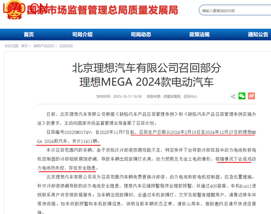 但更大的原因还是去年10月的MEGA起火事故。当时,上海一辆理想MEGA在行驶过程中突然起火,并迅速蔓延,不过幸好车内人员及时逃出,无人受伤。事故发生后一周,理想便主动召回11411辆理想MEGA2024款汽车。