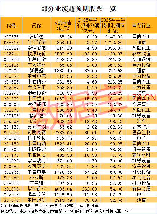 业绩超预期股名单出炉