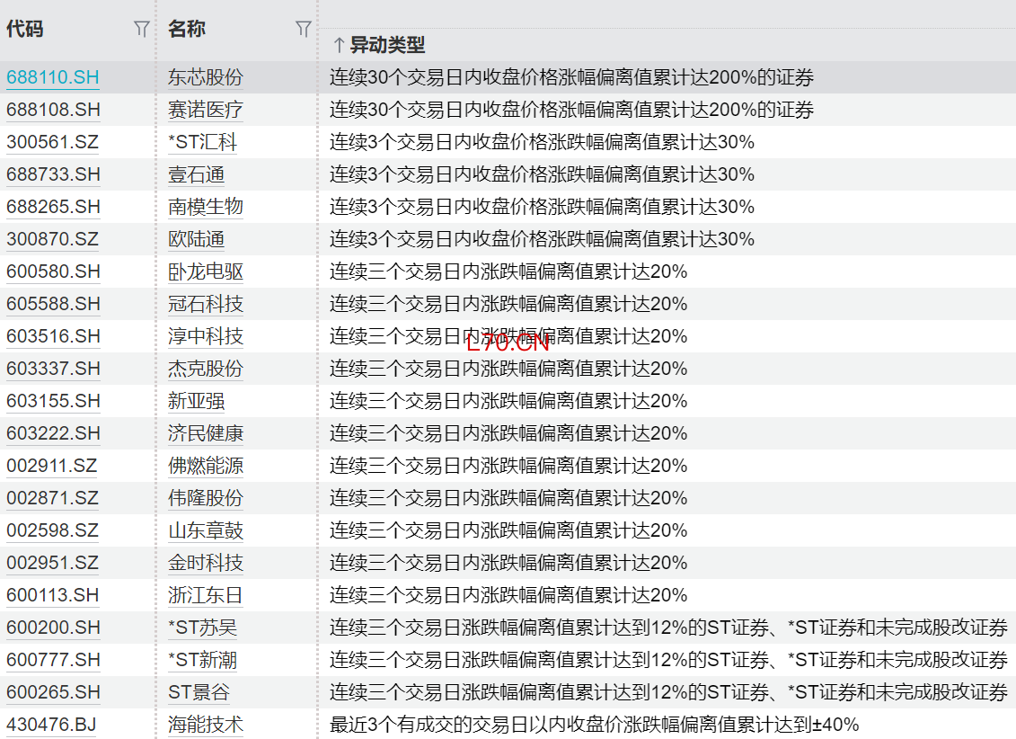 连续异动个股一览