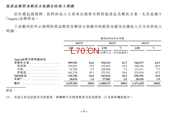 从收入构成来看,自有品牌Aqara的收入从8.99亿元增至9.47亿元,占总收入的比例从62.6%升至64.3%。在自有品牌内部,传感器业务增速最快,收入占比从17.8%升至20.9%,2025年实现营收3.08亿元;控制器仍是收入最大的硬件品类,2025年营收5.25亿元,但占比已从39.1%降至35.7%;中枢产品体量最小,年营收仅1.13亿元,尚未形成规模效应。