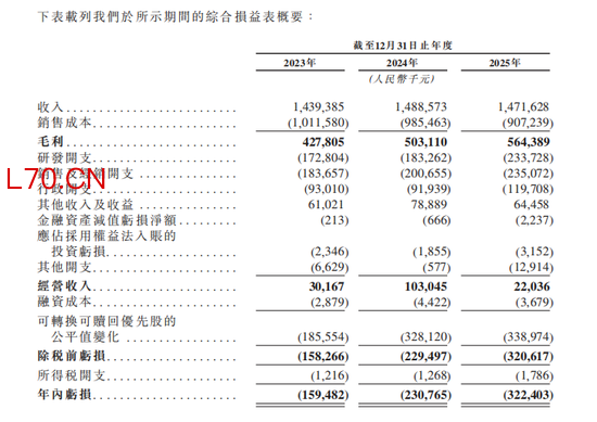 利润方面,公司录得净利润分别为-1.59亿元、-2.31亿元和-3.22亿元,亏损逐年扩大,2025年较2023年近乎翻倍。