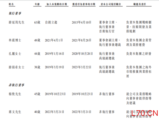 游延筠(创始人、董事会主席、首席执行官):1963年出生,今年63岁。