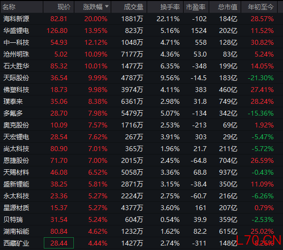 锂电概念股集体走强