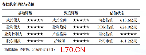 2025年,春秋航空经营数据呈现量增价减趋势,其中旅客运输量为3233.5万人次,同比增长12.7%,客座率为91.5%,同比上升0.04个百分点,客公里收益0.37元,同比下降3.8%。“壹评级”指出,在机票价格下滑的不利背景下,公司毛利率小幅提升,主要得益于两大核心因素:一是国际油价中枢下移,当年单位航油成本同比下降9.6%;二是飞机运营效率改善,全年飞机日利用率达9.97小时,较2024年提升0.67小时。2026年3月以来,国际油价大幅上涨对公司业绩形成阶段性压制,股价随之出现明显回调。“壹评级”认为,春秋航空已经跌出机会,公司当前估值具有明显吸引力。后续若外围冲突逐步缓和,叠加行业“反内卷”持续,看好公司估值迎来修复空间。